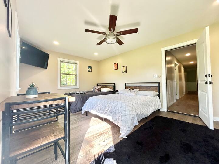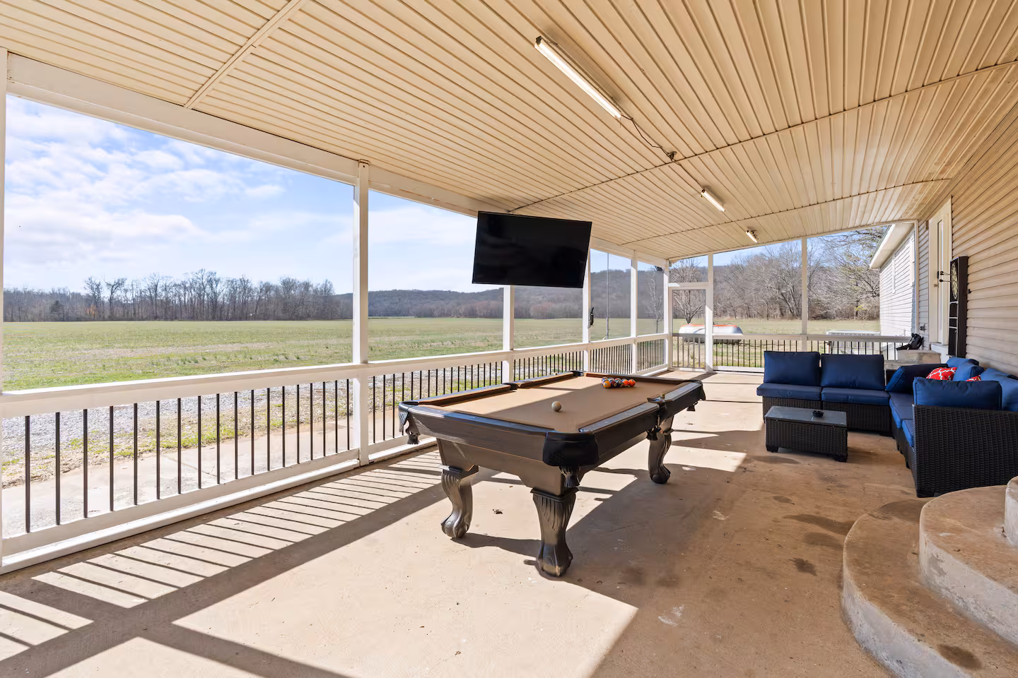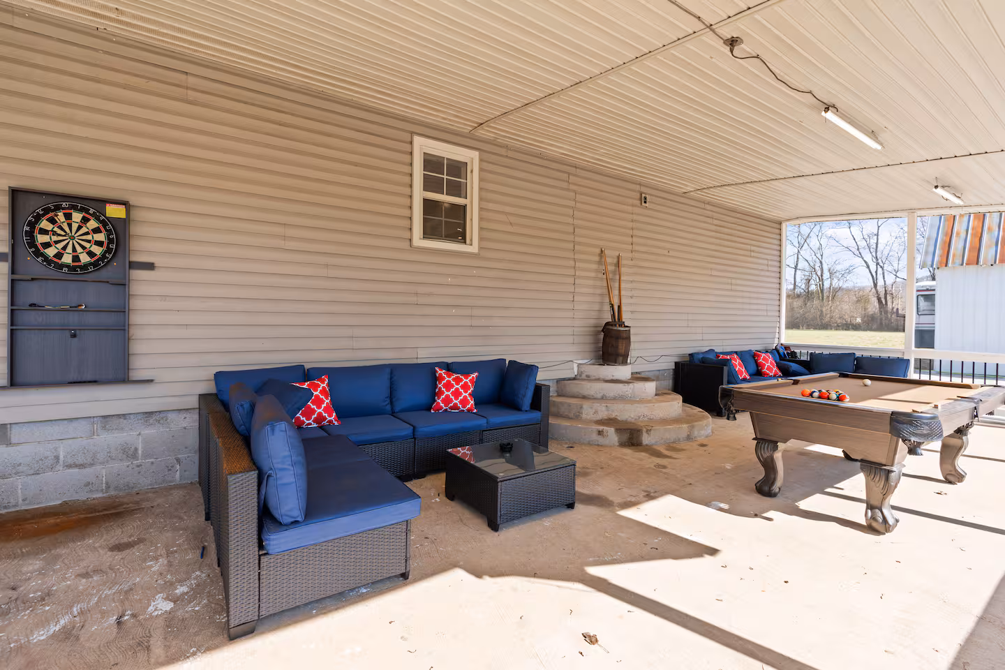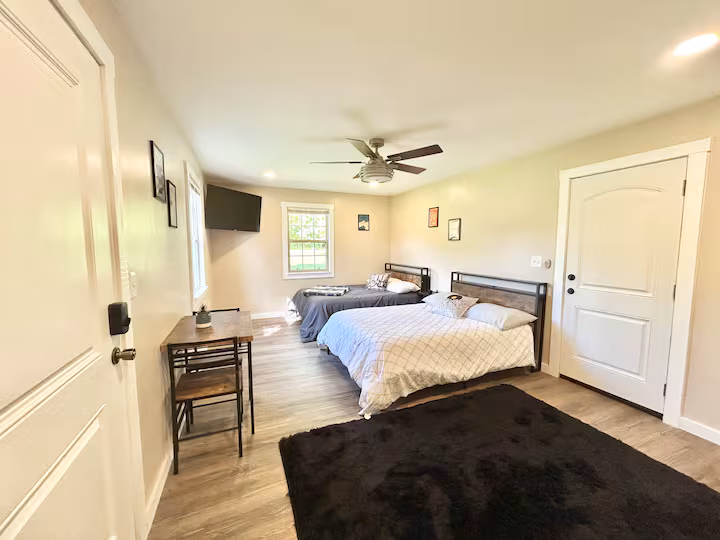 Three bedrooms, a full kitchen, laundry, and an outdoor patio with a pool table—yeah, it’s a vibe. Just a short stroll to The Caverns, so you can catch the show and crash with your crew all in one perfect spot. Set on 25 acres of peaceful farmland, this place is equal parts fresh renovation and open-air freedom.
